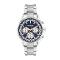 Pánské náramkové hodinky Napájení z baterie Průměr pouzdra 44,0 mm Pouzdro ve tvaru kruhu Kovové pouzdro Stříbrná barva pouzdra Kovový tah Stříbrná barva tahu Ručičkový ciferník TMAVO MODRÁ barva ciferníku Ciferník s dvanácti indexy Materiál skla - minerální sklo Odolné proti vodě během sprchování a mytí Datum Stopky