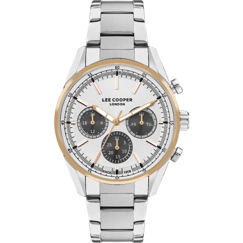 Pánské náramkové hodinky Napájení z baterie Průměr pouzdra 44,0 mm Pouzdro ve tvaru kruhu Kovové pouzdro Stříbrná barva pouzdra Kovový tah Stříbrná barva tahu Ručičkový ciferník Stříbrná barva ciferníku Ciferník s dvanácti indexy Materiál skla - minerální sklo Odolné proti vodě během sprchování a mytí Datum Stopky