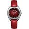 Dámské náramkové hodinky Napájení z baterie Průměr pouzdra 30,0 mm Pouzdro ve tvaru oválu Kovové pouzdro Stříbrná barva pouzdra Kožený tah Červená barva tahu Ručičkový ciferník Červená barva ciferníku Ciferník s dvanácti indexy Materiál skla - minerální sklo Odolné proti vodě při běžném nošení
