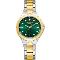 Dámské náramkové hodinky Napájení z baterie Průměr pouzdra 34,0 mm Pouzdro ve tvaru kruhu Kovové pouzdro Stříbrná/zlatá barva pouzdra Kovový tah Stříbrná/zlatá barva tahu Ručičkový ciferník Zelená barva ciferníku Ciferník s dvanácti indexy Materiál skla - minerální sklo Odolné proti vodě při běžném nošení