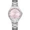 Dámské náramkové hodinky Napájení z baterie Průměr pouzdra 34,0 mm Pouzdro ve tvaru kruhu Kovové pouzdro Stříbrná barva pouzdra Kovový tah Stříbrná barva tahu Ručičkový ciferník Růžová barva ciferníku Ciferník s dvanácti indexy Materiál skla - minerální sklo Odolné proti vodě při běžném nošení