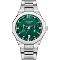 Pánské náramkové hodinky Napájení z baterie Průměr pouzdra 44,0 mm Pouzdro ve tvaru kruhu Kovové pouzdro Stříbrná barva pouzdra Kovový tah Stříbrná barva tahu Ručičkový ciferník Zelená barva ciferníku Ciferník s dvanácti indexy Materiál skla - minerální sklo Odolné proti vodě při běžném nošení