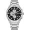 Pánské náramkové hodinky Napájení z baterie Průměr pouzdra 45,0 mm Pouzdro ve tvaru kruhu Kovové pouzdro Stříbrná barva pouzdra Kovový tah Stříbrná barva tahu Ručičkový ciferník Černá barva ciferníku Ciferník s dvanácti indexy Materiál skla - minerální sklo Odolné proti vodě při běžném nošení