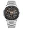 Pánské náramkové hodinky Napájení z baterie Průměr pouzdra 45,0 mm Pouzdro ve tvaru kruhu Kovové pouzdro Stříbrná barva pouzdra Kovový tah Stříbrná barva tahu Ručičkový ciferník Černá barva ciferníku Ciferník s dvanácti indexy Materiál skla - minerální sklo Odolné proti vodě při běžném nošení
