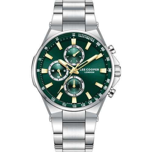 Pánské náramkové hodinky Napájení z baterie Průměr pouzdra 42,0 mm Pouzdro ve tvaru kruhu Kovové pouzdro Stříbrná barva pouzdra Kovový tah Stříbrná barva tahu Ručičkový ciferník Zelená barva ciferníku Ciferník s dvanácti indexy Materiál skla - minerální sklo Odolné proti vodě při běžném nošení