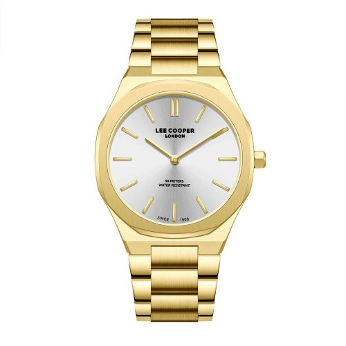 Pánské náramkové hodinky Napájení z baterie Průměr pouzdra 42,0 mm Pouzdro ve tvaru čtverce Kovové pouzdro Zlatavá barva pouzdra Kovový tah Zlatavá barva tahu Ručičkový ciferník Stříbrná barva ciferníku Ciferník s dvanácti indexy Materiál skla - minerální sklo Odolné proti vodě při běžném nošení