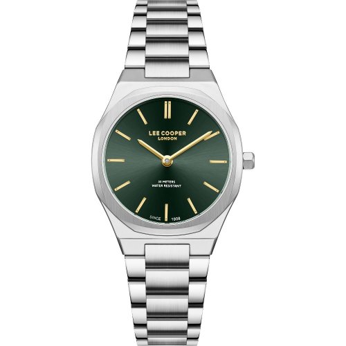 Dámské náramkové hodinky Napájení z baterie Průměr pouzdra 33,0 mm Pouzdro ve tvaru čtverce Kovové pouzdro Stříbrná barva pouzdra Kovový tah Stříbrná barva tahu Ručičkový ciferník Zelená barva ciferníku Ciferník s dvanácti indexy Materiál skla - minerální sklo Odolné proti vodě při běžném nošení