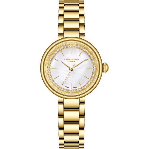 Dámské náramkové hodinky Napájení z baterie Průměr pouzdra 28,0 mm Pouzdro ve tvaru kruhu Kovové pouzdro Zlatavá barva pouzdra Kovový tah Zlatavá barva tahu Ručičkový ciferník PERLEŤOVÁ barva ciferníku Ciferník s dvanácti indexy Materiál skla - minerální sklo Odolné proti vodě při běžném nošení
