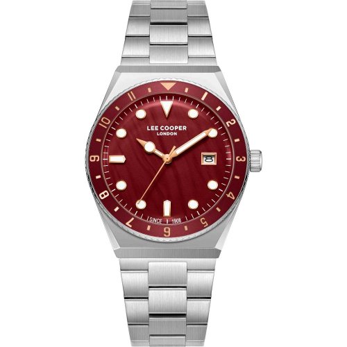 Pánské náramkové hodinky Napájení z baterie Průměr pouzdra 39,0 mm Pouzdro ve tvaru kruhu Kovové pouzdro Stříbrná barva pouzdra Kovový tah Stříbrná barva tahu Ručičkový ciferník Červená barva ciferníku Ciferník s dvanácti indexy Materiál skla - minerální sklo Odolné proti vodě při běžném nošení