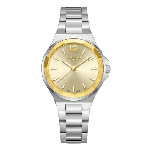 Dámské náramkové hodinky Napájení z baterie Průměr pouzdra 33,0 mm Pouzdro ve tvaru kruhu Kovové pouzdro Stříbrná barva pouzdra Kovový tah Stříbrná barva tahu Ručičkový ciferník Zlatavá barva ciferníku Ciferník s dvanácti indexy Materiál skla - minerální sklo Odolné proti vodě při běžném nošení