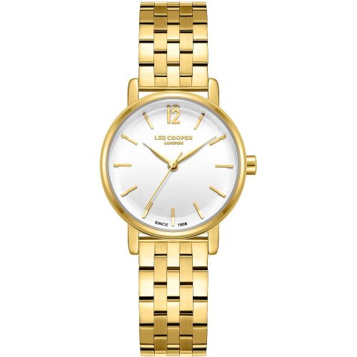 Dámské náramkové hodinky Napájení z baterie Průměr pouzdra 30,0 mm Pouzdro ve tvaru kruhu Kovové pouzdro Zlatavá barva pouzdra Kovový tah Zlatavá barva tahu Ručičkový ciferník Bílá barva ciferníku Ciferník s dvanácti indexy Materiál skla - minerální sklo Odolné proti vodě při běžném nošení