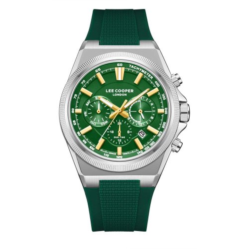Pánské náramkové hodinky Napájení z baterie Průměr pouzdra 43,0 mm Pouzdro ve tvaru kruhu Kovové pouzdro Stříbrná barva pouzdra Zelená barva tahu Ručičkový ciferník Zelená barva ciferníku Ciferník s dvanácti indexy Materiál skla - minerální sklo Odolné proti vodě při běžném nošení