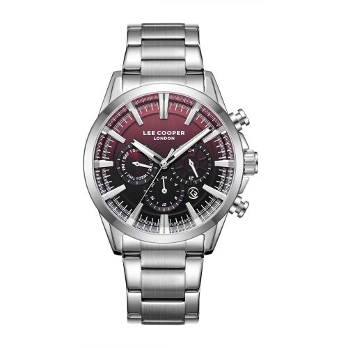Pánské náramkové hodinky Napájení z baterie Průměr pouzdra 43,0 mm Pouzdro ve tvaru kruhu Kovové pouzdro Stříbrná barva pouzdra Kovový tah Stříbrná barva tahu Ručičkový ciferník Červená barva ciferníku Ciferník s dvanácti indexy Materiál skla - minerální sklo Odolné proti vodě při běžném nošení