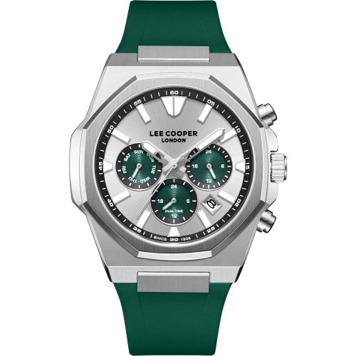Pánské náramkové hodinky Napájení z baterie Průměr pouzdra 44,0 mm Pouzdro ve tvaru osmihranu Kovové pouzdro Stříbrná barva pouzdra Zelená barva tahu Ručičkový ciferník Stříbrná barva ciferníku Ciferník s dvanácti indexy Materiál skla - minerální sklo Odolné proti vodě při běžném nošení