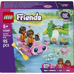 Tato dětská stavebnice LEGO® Friends Dobrodružný člun s axolotly obsahuje mini člun, 2 postavičky a 2 mini axolotly, se kterými si děti od 5 let zaručeně užijí spoustu zábavy Roztomilá loďka s motivem axolotla má kývající se ocas a součástí jsou vesla a 2 záchranné vesty, které děti inspirují k vyprávění příběhů o dobrodružstvích v přírodě Tato stavebnice obsahuje minipanenku Lea, mikrofigurku Alby, 2 figurky axolotlů a doplňky, které děti inspirují ke kreativnímu hraní S touto hračkou si děti vymyslí zábavné příběhy o přírodě a zvířátkách a pomocí mini lodě prozkoumávají přirozené prostředí axolotlů