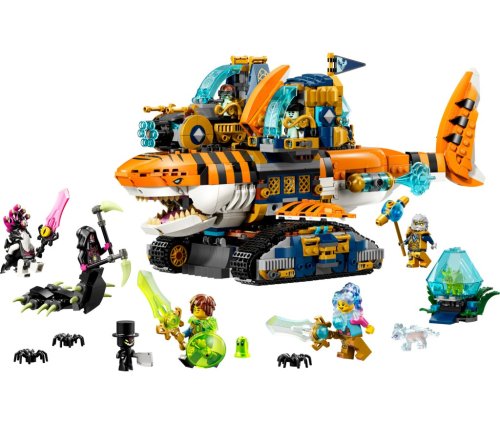 Rozpruďte dětskou fantazii se stavebnicí LEGO® DREAMZzz Tygrožraločí tank pro kluky a holky od 9 let, která nabízí hned 2 zábavné možnosti sestavení Děti si můžou postavit a řídit žraločí tank s otevírací tlamou, pohyblivým ocasem a dvěma bočními moduly s vystřelovači, úložným prostorem a místem pro minifigurku řidiče Děti můžou hračku přestavit na pirátskou loď ve tvaru žraloka s předním dělem, bočními vystřelovači, otevírací tlamou, úložným prostorem pro poklad v zadní části a doplňkem kotvy Součástí balení je minifigurka Matea, Izzie, pana Oze, císaře z nočních můr a Ariky pro hru plnou představivosti, dále Z-Flek, škleboun, 3 pavouci, 2 snílci a 2 figurky pokladových stvoření