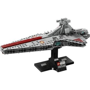 Postavte a vystavte si středně velký model vesmírné lodi Útočný křižník třídy Venator z filmu Star Wars: Pomsta Sithů z kostek LEGO® Zachyťte pomocí kostek LEGO® aerodynamickou siluetu a charakteristické znaky ikonického útočného křižníku třídy Venator Vystavte své dílo na sestavitelném podstavci s cedulkou a odklopte horní část, abyste odhalili hangár Stavebnice je součástí sběratelské řady středně velkých sestavitelných modelů ikonických vesmírných lodí ze ságy Star Wars