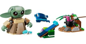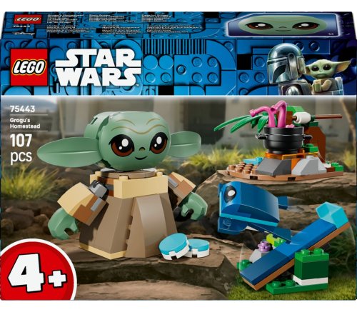 Děti od 4 let se s touto stavebnicí inspirovanou 1. řadou seriálu Star Wars: Mandalorian naučí stavět a vytvoří si vlastní fantastická dobrodružství v Groguově usedlosti Nastavte hlavu, paže a ruce snadno sestavitelné figurky Grogua do rozličných pozic Postavte ohniště s hrncem na uvaření dvou chapadel, vložte klacek s marshmallow do Groguovy ruky a najděte jednu ze dvou modrých makronek v Groguově bříšku Umístěte sorganskou žábu na katapult, aby vyskočila