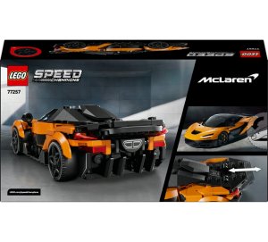 Dopřejte klukům a holkám od 9 let strhující rychlou akci s replikou skutečného superauta LEGO® Speed Champions McLaren W1 (77257). Děti si sestaví a vystaví stylové závodní auto s celou řadou slavných designových detailů inspirovaných skutečným vozem, které bylo uvedeno na trh u příležitosti 50. výročí prvního vítězství týmu McLaren v mistrovství světa Formule 1. Tento model vozu McLaren má nastavitelné zadní křídlo pro jízdu nebo závodění, zadní motor, kokpit, informačně-zábavní displej a přívody vzduchu po stranách a na kapotě. Součástí závodního autíčka je také minifigurka řidiče v oblečení McLaren s helmou, parukou a hasákem, který lze také použít k nalepování samolepek a oddělování kostek. Stavebnice LEGO® Speed Champions představují skvělý dárek pro děti a umožňuje jim postavit si repliky nejikoničtějších světových vozů. Aplikace LEGO Builder jim dodává jistotu a oporu při stavění – modely můžou přibližovat, otáčet ve 3D a sledovat postup pomocí srozumitelného digitálního návodu. Stavebnice obsahuje 287 dílků.