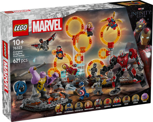 Tato stavebnice zobrazuje velkolepou bitvu z filmu Avengers: Endgame z dílny studia Marvel a obsahuje interdimenzionální portály vytvořené pomocí dvouprstenu a 9 minifigurek: Kapitán Amerika (se štítem), Iron Man MK85 (s mečem a štítem), Chitauri (s vystřelovačem na ruce), Ant-Man, Scarlet Witch (s dílky ve tvaru plamene), Doctor Strange, Iron Spider (se 4 pohyblivýma „nohama“ na zádech), Black Panther a Falcon (se 2 vystřelovači). Díky velké figurce Thanose z kostek LEGO, plně pohyblivému robotickému obleku Ant-Mana, 2 funkcím vybuchujících skal a nekonečně všestranné přestavitelnosti si děti vychutnají superhrdinskou akci velkolepých rozměrů! Model obsahuje 621 dílků.