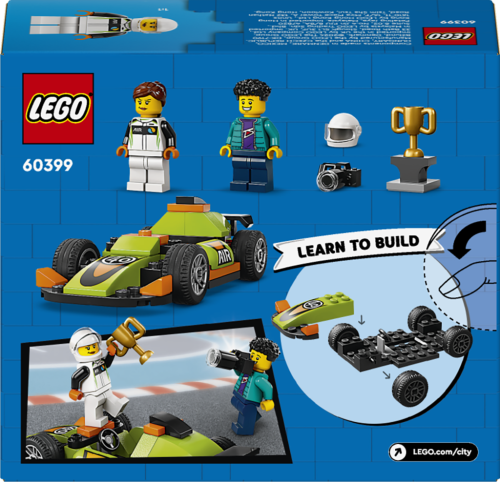 • Hračka závodního auta pro děti od 4 let – Se stavebnicí LEGO® City Zelené závodní auto se sestavitelným vozem si děti užijí hodiny nápaditého hraní • Co najdete v krabici? – Součástí je minifigurka fotografa a závodní jezdkyně, trofej pro výhercea vše, co malí stavitelé potřebují k sestavení modelu závodního auta • Fantazii se meze nekladou – Usaďte minifigurku LEGO® závodní jezdkyně do kokpitu auta a vychutnejte si hodiny kreativního hraní a vyprávění • Vytvořeno pro malé stavitele – Tato stave bnice LEGO® auta pro děti od 4 let obsahuje začátečnickou kostku, jednoduchý obrázkový návod na stavění a 3D digitální pokyny v aplikaci LEGO Builder • Dárek z kostek LEGO® pro děti – Závodní auto představuje zábavný dárek k jakékoli příležitosti pro milovníky aut a fandy rychlých vozidel • Neomezené hraní – Spojte tuto stavebnici s ostatními modely z řady LEGO® City a zažijte ještě více zábavných dobrodružství • Zábavné učení – Stavebnice LEGO® City pomáhají dětem rozvíjet sebevědomí a klíčové dovednosti pro život otevřeným, kreativním hraním • Rozměry – Tato stavebnice LEGO® City se skládá z 56 dílků a auto měří přes 3 cm na výšku, 11 cm na délku a 5 cm na šířku.