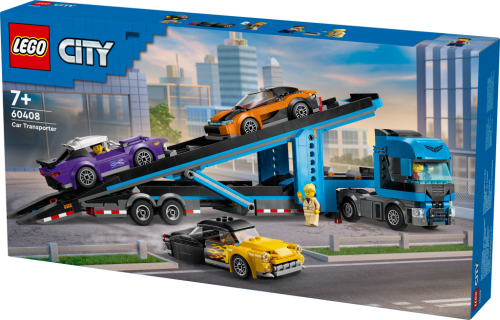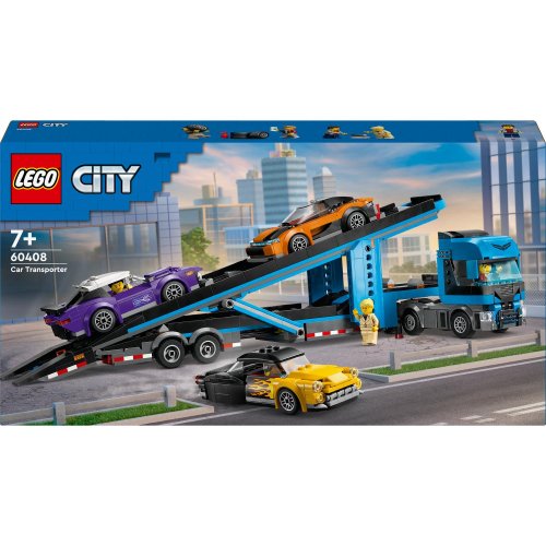 „Potěšte milovníky aut od 7 let stavebnicí LEGO® City (60408) Kamion pro přepravu aut se sporťáky. Děti mohou naklonit kabinu řidiče, aby se dostaly k motoru, připojit přívěs a spustit rampy na horní a dolní plošině, aby na přívěs mohly vyjet s vozidlem ve stylu 50. let, výkonným sporťákem ve stylu 70. let a moderním elektrickým superautem. Součástí této působivé stavebnice s kamionem jsou také 4 minifigurky pro kreativní hraní a vyprávění příběhů. Součástí této hračky LEGO s kamionem je podrobný tištěný návod na stavění a 3D návod v aplikaci LEGO Builder, což je digitální průvodce stavěním s intuitivními nástroji přibližování a otáčení. Umožní jim prohlížet si modely ze všech úhlů, zatímco na nich pracují. Stavebnice LEGO City představují skvělé vánoční nebo narozeninové dárky pro děti a součástí jsou parádní vozidla, realistické modely a zábavné postavy, které inspirují nápadité hraní bez hranic. Děti mohou tuto stavebnici kombinovat s dalšími sadami z řady LEGO City (prodávají se samostatně) a rozšířit si tak svět herních možností.“