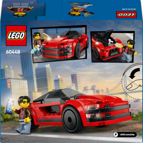 Potěšte svého malého milovníka automobilů od 5 let stavebnicí LEGO® City (60448) Červený sporťák. Tento elegantní model superauta má parádní ráfky, nízkoprofilové pneumatiky a kokpit s tónovaným sklem. Děti posadí minifigurku řidiče za volant, uloží do kufru mobilní telefon a čisticí prostředky a vyrazí na dálnici vstříc dobrodružství ve vysoké rychlosti! Součástí této stavebnice závodního vozu LEGO je tištění návod na stavění a 3D návod v doprovodné aplikaci LEGO Builder, která obsahuje nástroje přibližování a otáčení, aby si děti mohly během stavění prohlížet modely ze všech úhlů. Stavebnice LEGO City přinášejí parádní vozidla, realistické stavby a zábavné postavy, které inspirují k nápaditému hraní bez omezení. Děti můžou auto stavebnici vozidla kombinovat s dalšími sadami z řady LEGO City (prodávají se samostatně) a rozšířit si tak svět herních možností.
