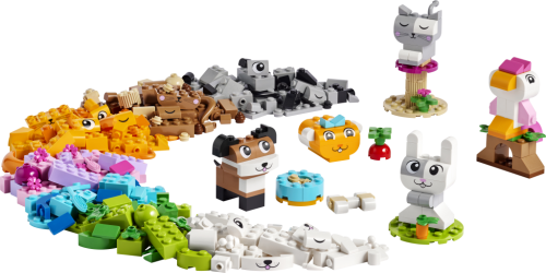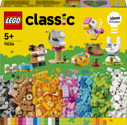 • Stavebnice mazlíčků pro děti – Malí milovníci zvířat od 5 let si se stavebnicí LEGO® Classic Tvořiví mazlíčci postaví zvířátka z kostek a přizpůsobí si je podle vlastní fantazie• Modely zvířat z kostek – Děti si postaví kočku na škrabadle, psa smiskou a kostí, křečka s jablkem, králíka s mrkví a ptáka na bidýlku• Inspirujte malé stavitele – Díky speciálním dílkům, včetně očí a úst, a jednoduchým podrobným návodům si děti mohou upravit a vytvořit mazlíčky podle vlastní fantazie• Nekonečné tvoř ení – Součástí je návod s 10 tipy na stavění, které podnítí kreativní stavění podle vlastní fantazie a umožní dětem experimentovat• Zvířátka z kostek LEGO® pro děti – Stavebnice představuje skvělý dárek k narozeninám, Vánocům nebo jiné příležitosti pro děti, které mají rády psy, kočky a další domácí mazlíčky• Určeno pro malé stavitele – Součástí je i srozumitelný obrázkový návod na stavění, díky němuž půjde stavění od ruky. Pro ještě více herních možností můžete sadu kombinovat se stavebnicemi 11035, 11036 a 11037 (prodávají se samostatně)• Rozvoj dovedností pomocí kostek – Řada LEGO® Classic otevírá malým stavitelům bránu do světa ničím neomezeného hraní a kreativního sebevyjádření• Zvířecí stavebnice LEGO® se 450 dílky – Po sestavení měří model psa přes 5 cm na výšku a model kočky na škrabadle měří přes 7 cm na výšku