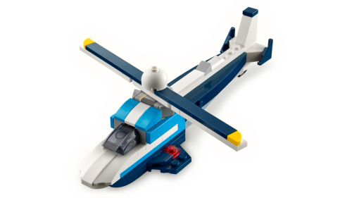 Se stavebnicí LEGO® Creator 3 v 1 Závodní letadlo si kluci a holky od 7 let postaví a přestaví 3 různá vozidla ze stejných kostek Děti se vydají na dobrodružství ve vzduchu se 3 různými možnostmi stavění (modely nelze sestavit současně): model závodního letadla, model tryskáče a model helikoptéry Závodní letadlo má otáčející se vrtuli a pohyblivá kola, model tryskáče má pohyblivá kola a model helikoptéry má otáčející se listový rotor Všechny 3 modely LEGO® si můžete vystavit na podstavci z kostek
