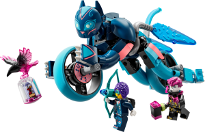 Zoey a Dooper – 2 minifigurky LEGO® DREAMZzz™ vdechnou stavebnici život. Hrdinku Zoey lze připevnit na zadní stranu modelu kočky a součástí jsou doplňky včetně luku