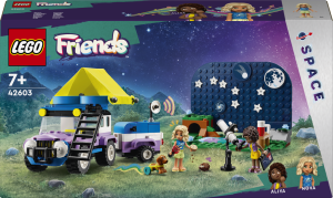 • Stavebnice Karavan na pozorování hvězd – Součástí je vozidlo 4×4 s karavanem a stanem, 2 minipanenky, pes, ježek a spousta doplňků pro děti od 7 let• Vytvářejte souhvězdí – Malí milovníci vědeckého bádání si užijí spoustu zábavy při vytváření vlastních souhvězdí z planet a hvězd na pozadí• 2 minipanenky a 2 figurky zvířat – Součástí stavebnice jsou postavy LEGO® Friends Nova a Aliya a figurka psa a ježka, takže dobrodružství může hned začít• Doplňky k dobrodružnému táboření – V krabici najdete teleskop, hrníčky, sušenky, dalekohled, baterku, hvězdy navíc a obrázky dalších planet, se kterými si přizpůsobíte souhvězdí• Skvělý nápad na dárek – Stavebnice představuje zábavný dárek k narozeninám, Vánocům nebo jakékoli jiné příležitosti pro děti, které milují vesmír• Kreativní stavebnice – Nenechte si ujít další sady z řady LEGO® Friends (prodávají se samostatně), ve kterých malí stavitelé objeví spoustu rozmanitých postav a vydají se s nimi na dobrodružství jako ze skutečného života• Rozměry – Stavebnice se skládá z 364 dílků a karavan s pohonem 4×4 měří přes 9 cm na výšku, 11 cm na délku a 6 cm na šířku