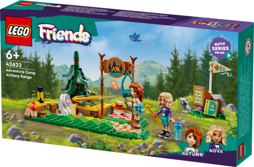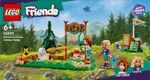 Součástí stavebnice LEGO® Friends (42622) Lukostřelnice na dobrodružném táboře pro děti od 6 let jsou minipanenky Autumn a Novy, mýval a spousta sportovních doplňků. Holky i kluci s touto napínavou stavebnicí můžou trénovat střelbu na terč, protože luk skutečně vystřeluje šípy. Sledujte, jak se terč otočí, když ho zasáhne šíp! K dispozici je barevně značená stupnice obtížnosti, takže děti mohou terč posunovat dál a zkoušet náročnější výzvy.