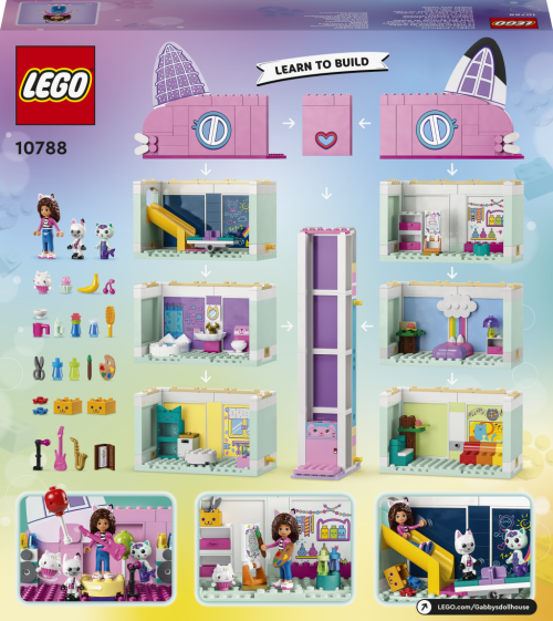 • Zábavný domek s 8 pokoji – Fanoušci seriálu z dílny DreamWorks Animation od 4 let mohou prozkoumat domek na vlastní pěst se stavebnicí LEGO® (10788) Gábinin kouzelný domek s oblíbenými postavami a autentickými doplňky • 4 kultovní postavy – Děti se pobaví s minifigurkou Gábi a figurkou Pandyho Ťapky, Rybočky a Dortěte • Autentické doplňky – Stavebnice obsahuje banán, třešně, dortík, hrnek, misku, lahev, nůžky, štětec, paletu, hřeben, lahvičku se šampónem, knížku, květinu, mikrofon, kytaru, saxofon a mnoho dalšího • Spousta věcí k objevování – Děti mohou péct v kuchyni, klouzat se v herně, tvořit v uměleckém pokoji, hrát na nástroje v hudebním pokoji, relaxovat v koupelně, zdřímnout si v ložnici nebo rozjet párty na střeše • Dárek pro fanoušky Gábi – Díky začátečnické kostce a jednoduchému stavění budou děti, které baví seriál Gábinin kouzelný domek, rozvíjet důležité dovednosti a užívat si nekonečné nápadité hraní • Zábava až po střechu – Domek měří přes 34 cm na výšku, 31 cm na šířku a 9 cm do hloubky • Zábavný návod na stavění – Tištěný obrázkový návod zobrazuje účel každého kroku stavění a aplikace LEGO® Builder nabízí digitální funkci přibližování a otáčení, aby si děti mohly při stavbě prohlížet svůj model • Ještě více zábavy – Široká škála stavebnic LEGO® 4+ otevírá dětem bránu do světa filmových idolů, oblíbených postav a hrdinů všedního dne • Záruka kvality – Dílky LEGO® splňují striktní oborové standardy kvality, což znamená, že jsou konzistentní a kompatibilní a umožňují snadné spojování • Záruka bezpečnosti – Dílky LEGO® pouštíme na zem, zahříváme, drtíme, kroutíme a analyzujeme, abychom zajistili, že splňují náročné globální bezpečnostní standardy