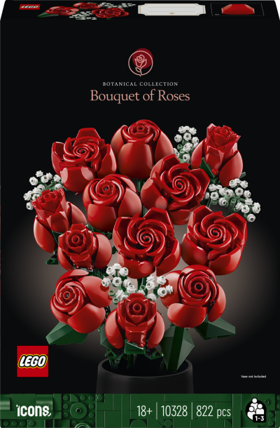 • Sestavitelná dekorační kytice – Odpočiňte si při stavění modelu Kytice růží z řady LEGO® Icons pro dospělé o samotě či s přáteli a rodinou• Co najdete v krabici – Součástí kreativní stavebnice je vše, co potřebujete k sestavení tuctu červených růží s dlouhými zelenými stonky a 4 větviček nevěstina závoje s drobnými bílými kvítky• Rozkvetlá poupata – Stavebnice LEGO® Icons Kytice růží představuje růže v různých fázích kvetení, včetně 4 plně rozkvetlých růží, 4 růží v rozkvětu a 4 poupat• Květiny, které nikdy nezvadnou – Ozdobte svůj domov nebo kancelář barevnými růžemi, jež nemusíte zalévat• Tip na dárek k Valentýnu – Stavebnice představuje krásný dárek pro dospělé fanoušky modelů LEGO®, dekorací a květin a zaručeně potěší jako dárek k narozeninám nebo k jakékoli jiné příležitosti• Stavění na vlastní pěst nebo s přáteli a rodinou – Stavebnice LEGO® Icons obsahuje 6 sáčků s kostkami a 3 návody na stavění se 3 fázemi kvetení a umožňuje tak skupinovou zábavu i tvoření o samotě• Součást botanické kolekce LEGO® – Vychutnejte si odpočinek s rozsáhlou řadou stavebnic LEGO navržených speciálně pro dospělé• Rozměry – Stavebnice má celkem 822 dílků a nejvyšší růže měří přes 31 cm na délku