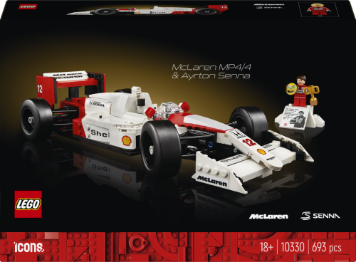 Stavebnice LEGO Icons McLaren MP4/4 a Ayrton Senna pro dospělé Součástí je replika vozu McLaren MP4/4 a minifigurka Ayrtona Senny Závodní auto LEGO Icons s funkčním řízením, spojovací tyčí a hladkými pneumatikami Součástí je podstavec na vystavení pro závodní auto a pro minifigurku Aytrona Senny Darujte tuto stavebnici jako vánoční nebo narozeninový dárek milovníkům aut V aplikaci LEGO Builder najdete digitální verzi návodu na stavění Objevteinspirativní řadu stavebnic LEGO navržených pro dospělé Měří přes 12 cm na výšku, 32 cm na délku a 17 cm na šířku