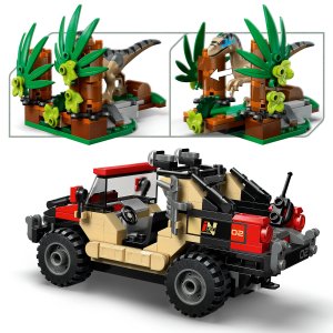 Stavebnice LEGO® Jurassic World (76972) Únik před raptorem v terénním autě je inspirovaná filmem Jurassic World: Rebirth a poslouží jako skvělý dárek pro kluky a holky od 6 let, kteří milují tyto pravěké tvory. Až děti stavebnici poskládají, připomenou si své oblíbené filmové scény nebo vymyslí nové příběhy s minifigurkami Reubena a Isabelly Delgadových, figurkou mláděte dinosaura Dolores a figurkou velociraptora s pohyblivou čelistí. Stavebnice obsahuje terénní auto a sledovací zařízení, keř se efektem „překvapení“, který můžete použít během hry s velociraptorem, a spoustu dalšího.