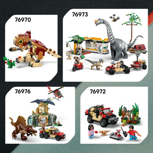 Aplikace LEGO Builder provede malé děti intuitivním stavitelským dobrodružstvím, umožní jim přibližovat a otáčet modely ve 3D, ukládat stavebnice a sledovat postup stavění. Tato nápaditá stavebnicepředstavuje zábavný dinosauří dárek k Vánocům nebo narozeninám a skvělý způsob, jak mladším dětem, které milují dobrodružství a dinosaury, představit svět filmů Jurassic World. Stavebnici lze kombinovat také s dalšími stavebnicemi LEGO Jurassic World ( prodávají se samostatně) pro ještě větší porci zábavy. Stavebnice se skládá ze 199 dílků.