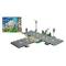 Silnice s pruhy, retardéry a přechodem. Navíc nechybí pouliční osvětlení, které ve tmě skutečně svítí, semafory, dopravní značky, stromy a zeleň Sestavená křižovatka měří přes 13 cm na výšku, 44 cm na šířku a 38 cm do hloubky