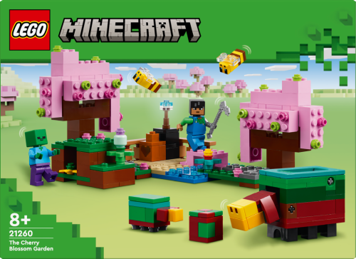 Stavebnice LEGO® Minecraft® Zahrada s rozkvetlými třešněmi pro děti od 8 let Součástí je figurka Minecraft® Sunny a sniffera s funkcí čichání Děti Sunnypomáhají starat se o zahradu a odehnat nepřátelskou zombie Součástí jsou stromy, písková zahrada, most, torchflower, motyka, květináč a černovec Tip na dárek pro fanoušky hry Minecraft® a děti, které milují stavebnice s přírodou a zvířátky Lze kombinovat s dalšími stavebnicemi z řady LEGO® Minecraft® (prodávají se samostatně) Stavebnice LEGO® Minecraft® dětem přinášejí nový způsob, jak si tvořivě vychutnat videohry Stavebnice se skládá z 304 dílků a model měří přes 19 cm na šířku