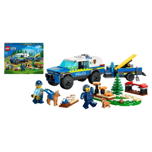 Cvičiště policejních psů od LEGO City pro děti od 5 let s několika modely Obsahuje model terénního vozu, přívěs, cvičiště, 2 minifigurky a 2 figurky pejsků Cvičiště obsahuje houpačku, tyč na přeskoky a stupátka Zábavný dárek LEGO k narozeninám, Vánocům nebo jakékoli jiné příležitosti Terénní vůz měří přes 7 cm na výšku, 14 cm na délku a 6 cm na šířku Doplňky pro minifigurky zahrnují kartáč, baterku a lopatu Součástí stavebnice je tištěný návod a interaktivní aplikace LEGO Builder Děti budou při hraní rozvíjet kreativitu, fyzické dovednosti a získají sebevědomí