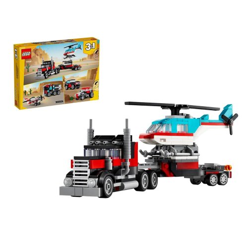 Stavebnice LEGO Creator 3 v 1 Náklaďák s plochou korbou a helikoptéra PN 31147