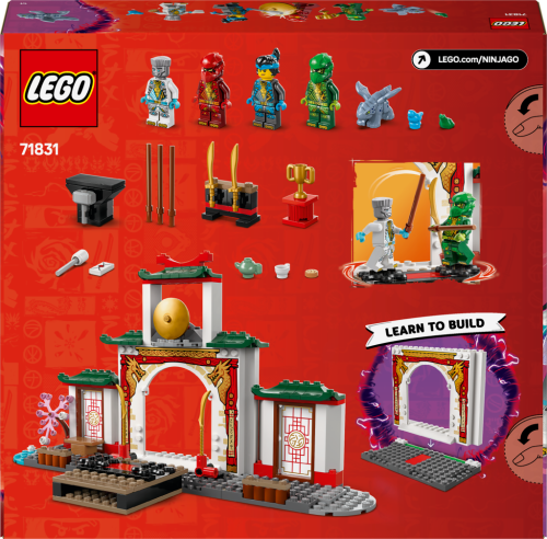 Děti od 4 let s akční stavebnicí Chrám nindžů Spinjitzu objeví radost ze stavění a vychutnají si příběhy s nindži Propracovaný chrám nindžů se skládá z čajovny, prostoru protrénink se zbraněmi, malé zahrady a turnajového pódia se 2 otáčejícími se bojovými deskami Nindža bojovníci Zane, Nya, Kai a Lloyd a model Riyu jako mládě, se kterými si děti připomenou akční scény Stavebnice obsahuje nindžovské zbraně včetně 2 mečů a 3holí, kladivo, ptáka, žábu, čajovou konvici, sušenku, hrnek, trofej a dopis