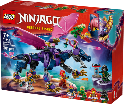 Se stavebnicí LEGO® NINJAGO® (71842) Rontu – Pán draků si fanoušci nindžů od 7 let připomenou akční scény z 3. řady televizního seriálu NINJAGO Dračí povstání. Tato stavebnice pro děti obsahuje model draka s pohyblivým ocasem, nohama, křídly, hlavou a čelistí, 2 pozicemi na zádech pro umístění minifigurky a vystřelovačem pod každým křídlem. Tato stavebnice LEGO obsahuje 4 minifigurky NINJAGO: Nindža válečníky Lloyda, Soru a Wyldfyre s nindžovskými zbraněmi a mistra neštěstí Zarkta, se kterými si děti přehrají velkolepé bitvy dobra proti zlu. Součástí je také miniaturní svatyně z kostek s tajným vzkazem, který Lloyd odhalí pomocí své průsvitné odhalující čepele. Stavebnice a sestavitelné akční hračky z řady LEGO NINJAGO (prodávají se samostatně) obsahují robotické obleky, vozidla a chrámy a fanoušci si s nimi užijí hodiny akčního hraní s nindži. Aplikace LEGO Builder vám a vašemu dítěti ukáže snadnou a intuitivní cestu stavitelským dobrodružstvím.