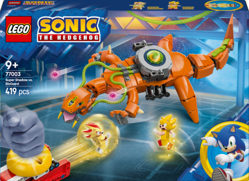 Stavebnice inspiruje k nekonečným příběhům se Super Shadowem, Super Sonicem aBiolizardem a představuje zábavný narozeninový dárek pro děti a fanoušky, se kterým si užijete společné hraní s kamarády Aplikace LEGO® Builder děti provede stavitelským dobrodružstvím a nabídne jim nástroje k přibližování a otáčení 3D modelů, ukládání stavebnic a sledování postupu Stavebnice LEGO Sonic the Hedgehog dětem představují vstupenku do světa plného akční zábavy a kreativního hraní se spoustou postav a nekonečnými možnostmi Stavebnice s motivem videohry se skládá ze 419 dílků a sestavitelná figurka Biolizarda měří přes 8 cm na výšku, 38 cm na délku a 15 cm na šířku