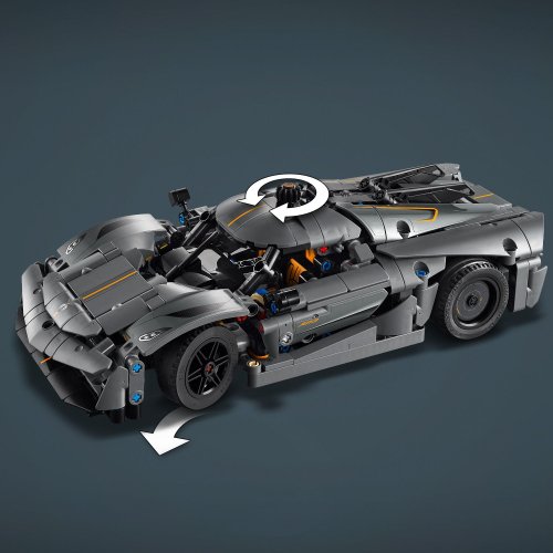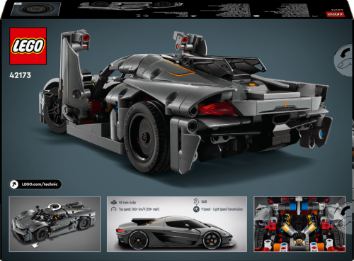 Inspirujte kluky a holky od 10 let k sestavení vlastního luxusního vozidla LEGO® Technic (42173) Šedé hyperauto Koenigsegg Jesko Absolut. Děti, které milují sestavitelné modely aut, se při sestavování všech detailů mohou těšit na obohacující výzvu. A stavění modelu je teprve začátek! Tato stavebnice vzdává hold jednomu z nejrychlejších hyperaut na světě, které smí jezdit po silnici, a je plná funkcí, které mohou automobiloví nadšenci objevovat. Malí stavitelé mohou při stavbě pohyblivého motoru V8 a diferenciálu prozkoumat řadu technických konceptů. Pak otestují řízení pomocí odnímatelného knoflíku, který lze vložit do přední části vozu. Úchvatnou vychytávkou v této stavebnici pro děti je systém synchro-helixových dveří, které se otevírají do úhlu 90 stupňů směrem ven, stejně jako u skutečného hyperauta. Toto vozidlo LEGO Technic představuje skvělý dárek pro děti, které milují auta. Součástí je aplikace LEGO Builder, která stavitelům umožňuje přibližovat a otáčet modely ve 3D. Rozměry – Stavebnice se skládá z 801 dílků a model měří přes 8 cm na výšku, 28 cm na délku a 13 cm na šířku