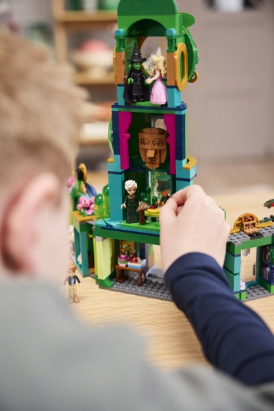 • Děti znovu s touto třípatrovou věží znovu prožijí kultovní scénu z filmu Wicked • Minipanenka Glindy, Elphaby, Wizarda, Madame Morrible a Fiyera • Procházejte obchody v Emerald City a setkejte se s Wizardem v místnosti s mapami v modelu věže • Řada prvků z filmu, jako je kniha Grimmerie a jabloň se sladkostmi • Dárek pro děti od 9 let a fanoušky filmu Wicked, kteří milují stavebnice domečků pro panenky • Užijte si ještě více kouzelné zábavy s dalšími modely LEGO® Wicked (prodávají se samostatně) • Přidejte se k Elphabě a Glindě na jejich přátelském dobrodružství s LEGO® Wicked • Stavebnice se skládá z 945 dílků a měří přes 39 cm na výšku