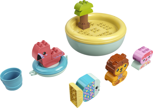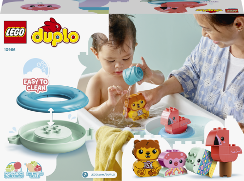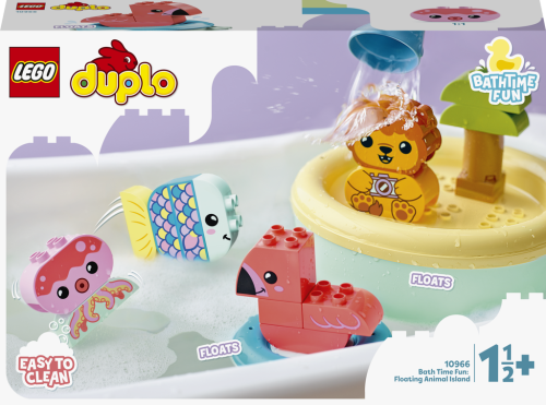 Sada Legrace ve vaně: Plovoucí ostrov se zvířátky (10966) z řady LEGO® DUPLO® Moje první přináší spoustu zábavných prvků, se kterými mohou rozvíjet své dovednosti všichni milovníci zvířat od 18 měsíců.