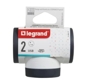 LEGRAND Revolution rozbočovač otočný 2x2P+T, nabíječka USB A+C, bílo-šedá