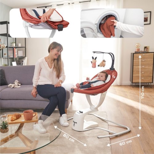- materiál potahu houpačky: 100% polyester, možno prát na 30° C, doporučujeme gelové prací prostředky