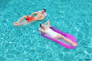 Nafukovací lehátko Aqua Lounge má bezpečnostní ventily a je vyrobeno z předem testovaného vinylu.